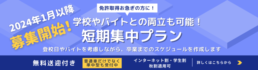 | 普通車AT車 282,600円 | 基本料金 AT291,600円 MT305,350円 ・学割(5,500円) ・ネット割(10,000円) ・冬割(5,500円)を適用 ・短期集中プラン12,000円 |