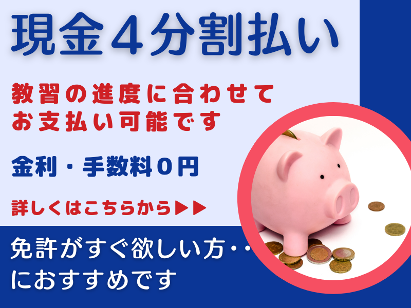 記載されている料金は、最短時間で卒業できる場合の料金ですので、超過することがあります。急なキャンセルの場合、キャンセル料が発生することがあります。